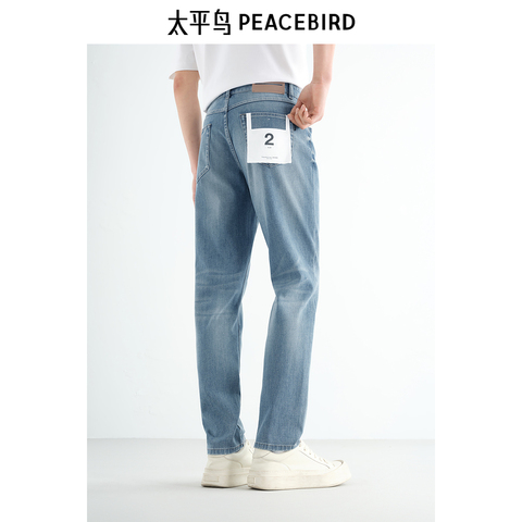 【冰芯棉】太平鸟男装牛仔裤夏款休闲浅色原牛水洗清凉透气薄款