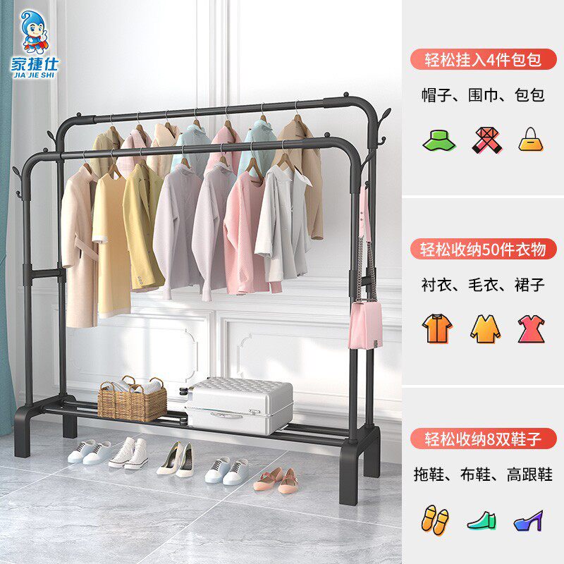 衣架落地折叠家用简易阳台晾晒衣服架子卧室收纳晾衣杆室内挂衣架