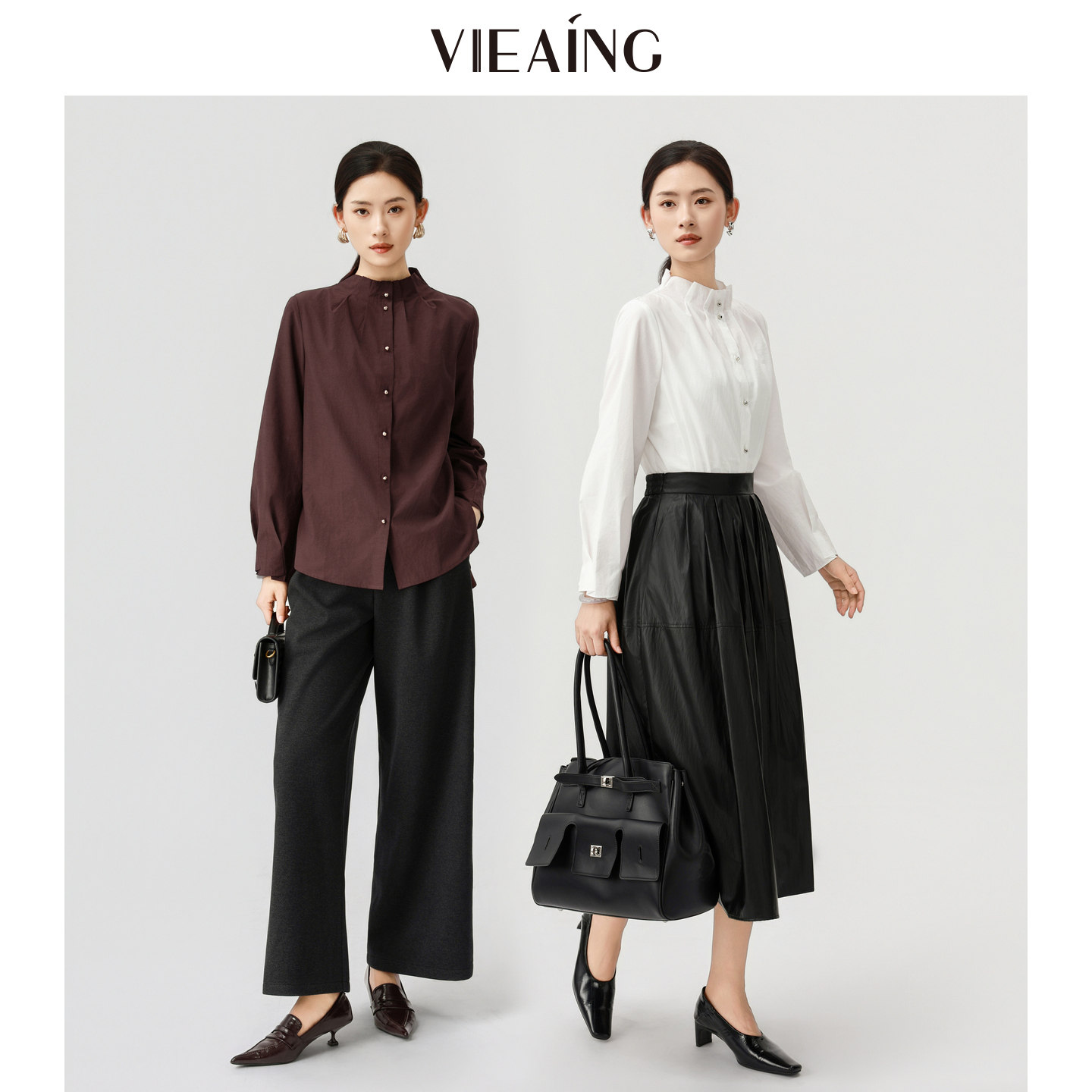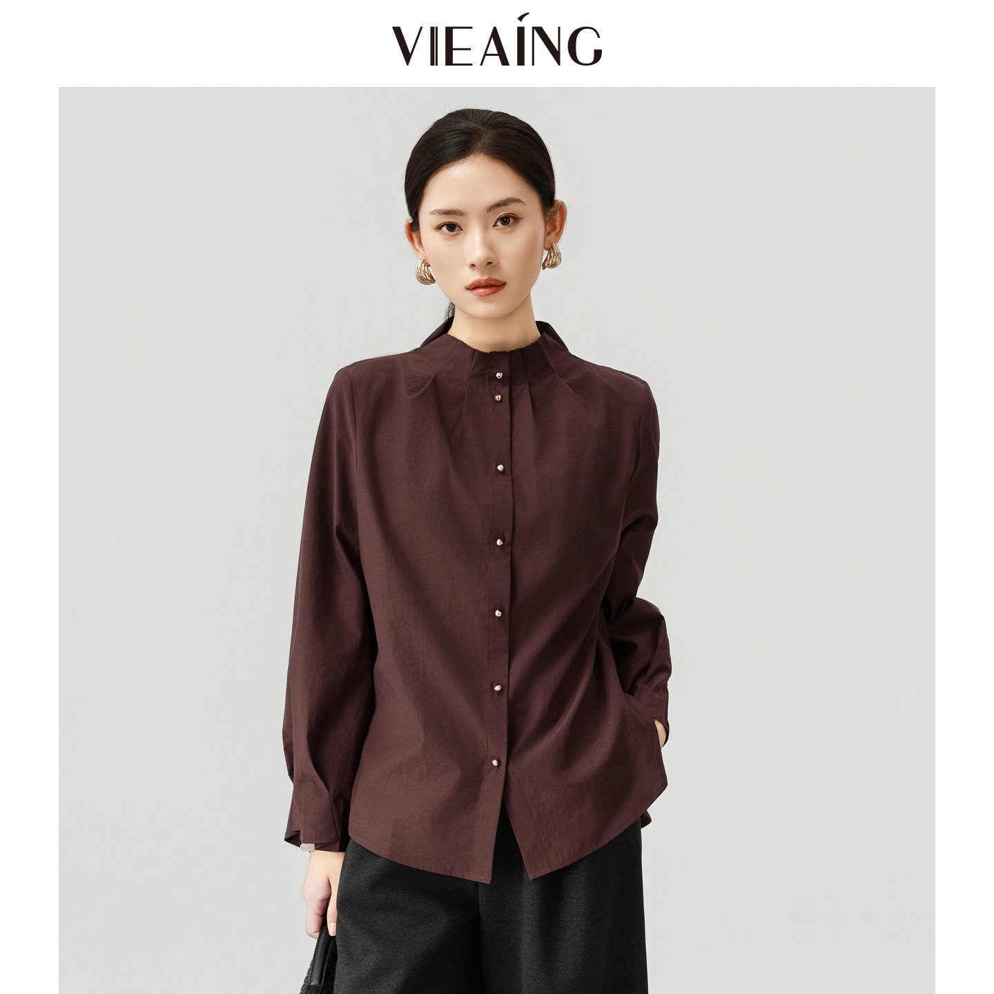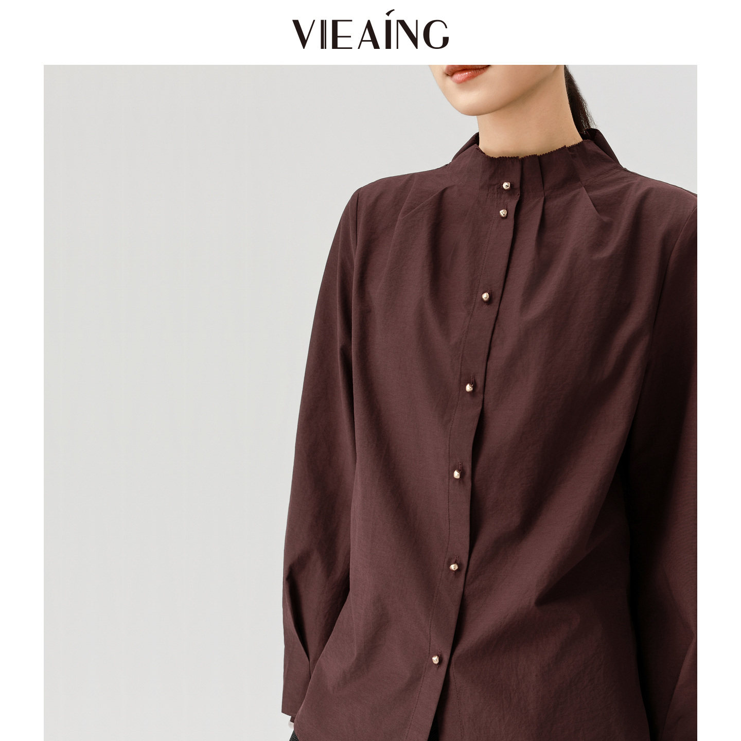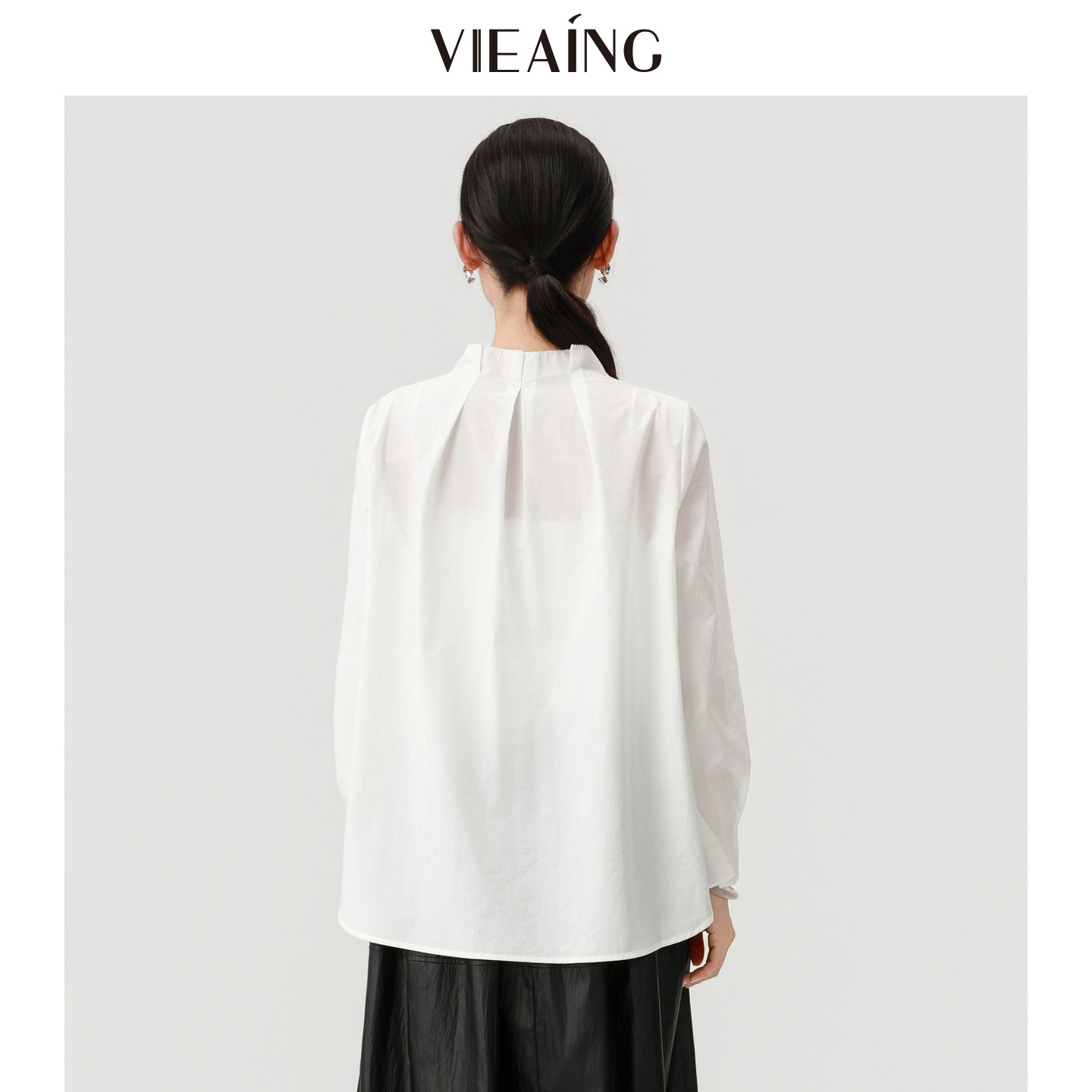 VIEA.ING薇迎商场同款白色衬衫女2026春季新款立领衬衣气质上衣