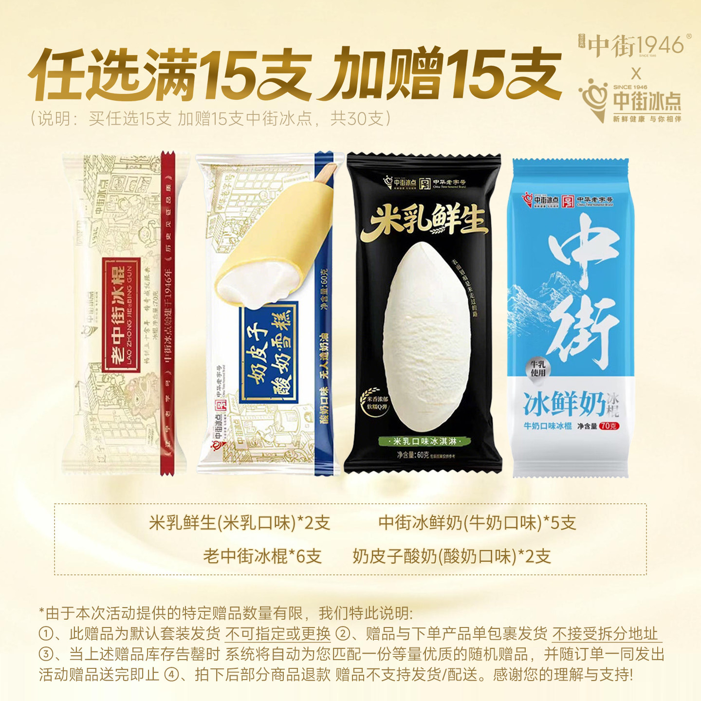 中街1946冰淇淋【138元任选15支】雪糕冰激凌大棒支任选冰棒80g