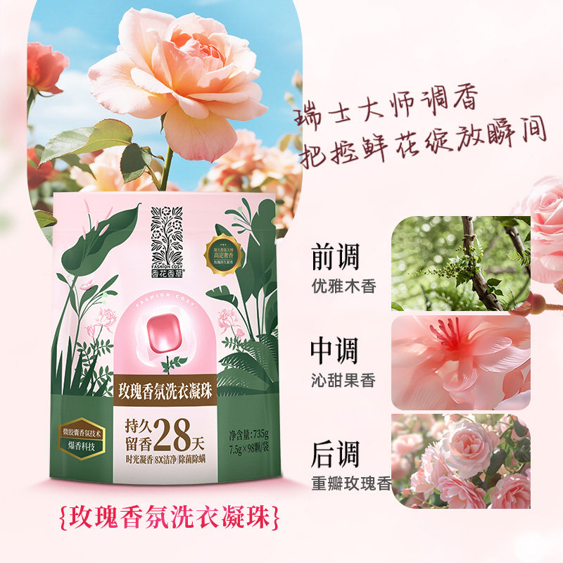 来自国货老品'牌“金鱼”洗衣凝珠!【98颗】玫瑰花香/【50颗】四效合一,两款任选一个价!99.9'%的除菌'率+8倍浓缩去污!微胶囊锁香技术,衣物在穿着、摩擦时会持续释放香气,就连香水都省了!!!