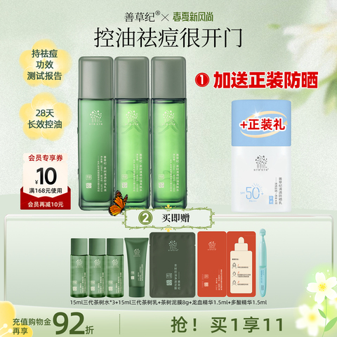 59¥ MF168 N0gcUB2vIwu¥ https://m.tb.cn/h.igFjoM9 【送正装防晒霜】善草纪三代茶树祛痘水乳套装补水保湿修护控油