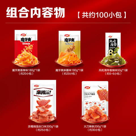 卫龙魔芋爽辣条零食约100小包
