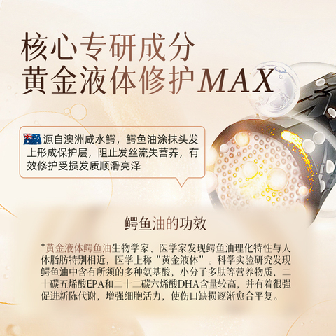 它富含真鳄鱼油,含有多种必需的脂肪酸和蛋白质,能够帮助修护秀发损伤。每一次使用后,就像给你的头发穿上一层保护衣