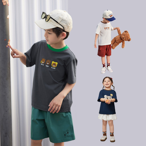 迷你巴拉巴拉男女童短袖T恤,儿童上衣夏装泰迪熊联名