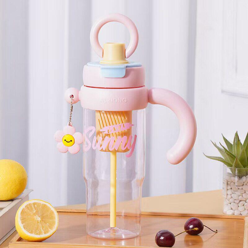直饮+吸管双饮口,食品级PC材质,便携提手!!不仅有颜值超高,容量还非常大足足有1200ml!!可拆卸独立花茶仓,设计超人性化,平时泡个花茶,柠檬片都很方便!!!!