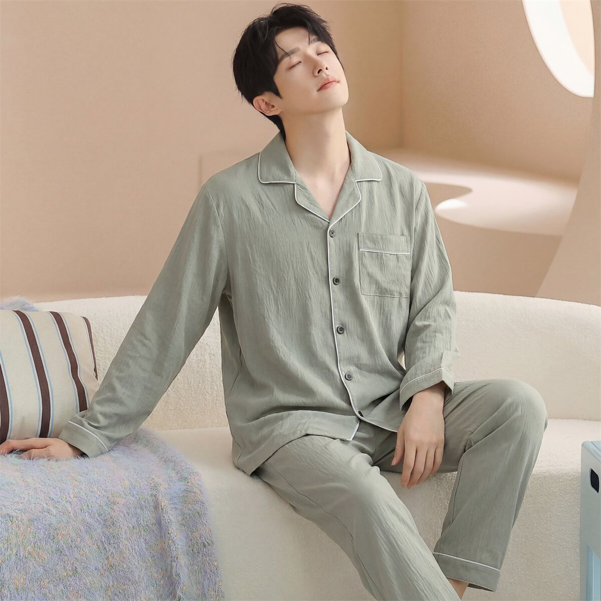 新中式国风竹叶睡衣女春秋款带胸垫长袖长裤甜美少女家居服套装xw