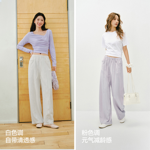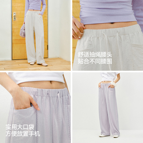 09¥ HU287 dEoBUzS2d3b¥ https://m.tb.cn/h.igz2D9t 森马休闲裤女春季花边裤子肌理垂感宽松阔腿裤2026新款显瘦舒芙裤