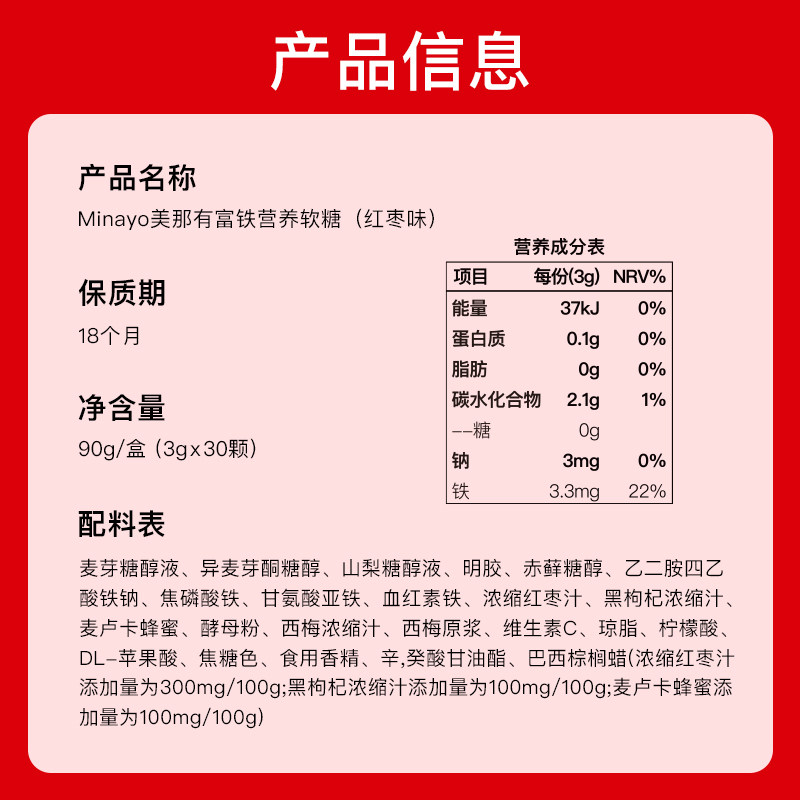 Minayo 美那有富铁软糖红枣味30颗*4盒女孕妇适用办公室分享