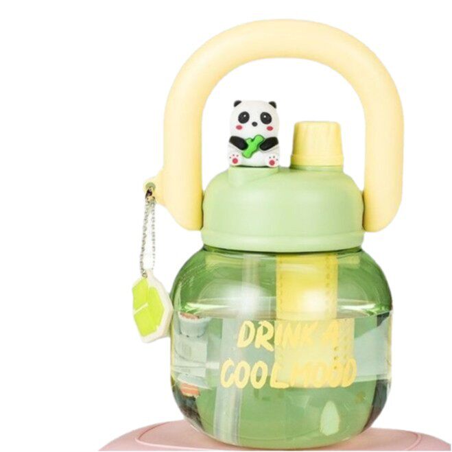 大容量拎拎壶颜值学生儿童双饮公仔塑料杯户外便捷式吸管大肚杯