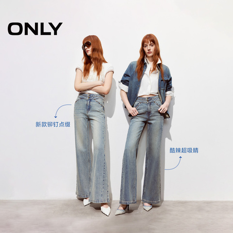 【热销爆款】ONLY2026春季新款时尚百搭水洗高腰喇叭裤牛仔裤女
