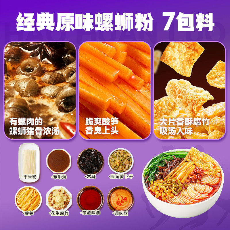 【淘金币+美食券+限时补=32】好欢螺螺蛳粉,柳州特产螺蛳粉,檀健次代言螺丝粉,夜宵方便速食米粉