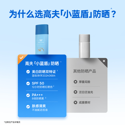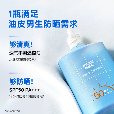 高夫男士清爽控油防晒乳小蓝盾SPF50高倍祛痘印户外通勤运动军训