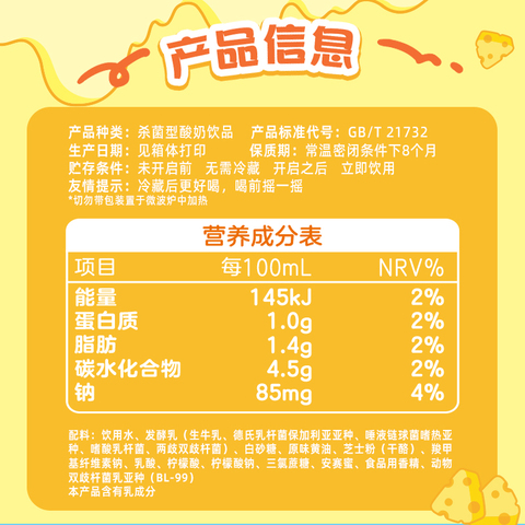 伊利黄油芝士味优酸乳200ml12盒