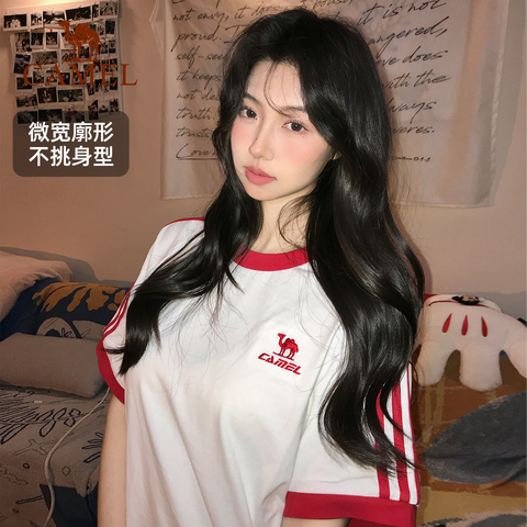 骆驼短袖夏日纯棉T神运动T恤女夏美式宽松情侣宽松复古休闲上衣男