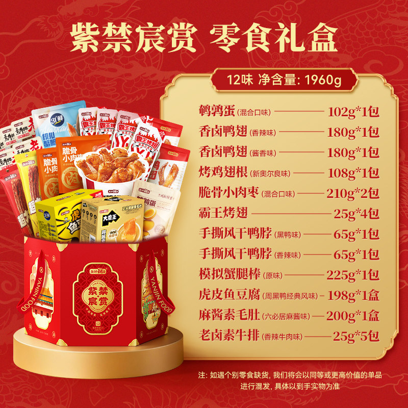 盐津铺子故宫紫禁宸赏礼盒礼物零食大礼包,1960g-故宫联名肉肉礼盒整箱近4斤,妥妥的都是追剧休闲小零食份量足!盐津家零食很好吃都去冲!一次吃遍盐津铺子热门零食荤素都有超值,满满当当一大包,馋到流