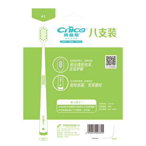 纳爱斯柔护型牙刷宽头高密,家庭八支装两组软毛不伤牙龈,清洁力强,适合全家使用,健康呵护从口腔开始!