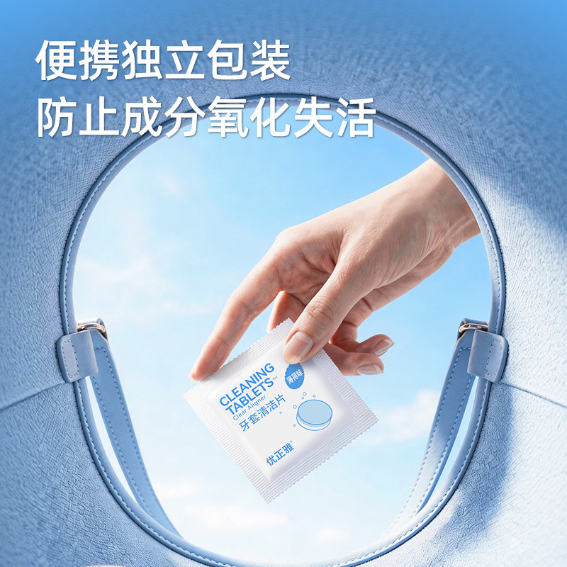 正雅隐形牙套清洁片,30片独立包装,超方便!泡腾设计,清洁效果超棒,正畸保持器、假牙都能用。小小一片,随时随地都能清洁,让你的牙齿时刻干净!