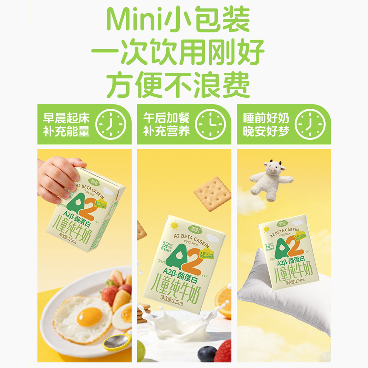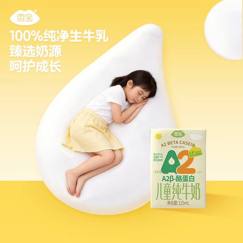 48¥ CA381 jzBqUAQidYX¥ https://m.tb.cn/h.ih33C1H 雪宝A2β-酪蛋白纯牛奶学生儿童全家营养早餐奶125ml*16盒