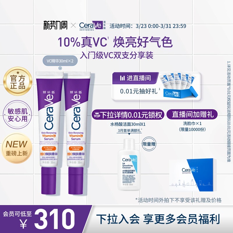 98¥ CZ356 xpj65YQ5pxT¥ https://m.tb.cn/h.iimDZ5O CeraVe适乐肤VC抗氧化精华改善暗沉提亮紧致修护早C晚A男女礼物