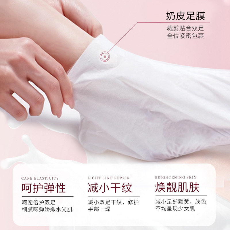 拍两件,第二件0元,凝肌嫩肤奶皮脚膜,温和软化老废角质,滋润修护干裂粗糙,敷出嫩滑细腻少女足。
