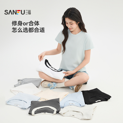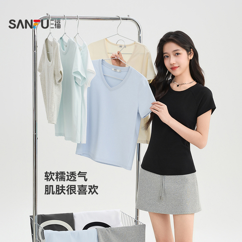 【三福】2026夏季新款短袖T恤女,简约百搭设计,小个子女生也能轻松驾驭!轻盈透气,休闲时尚,多款颜色可选,拍2件立减10元,性价比超高!