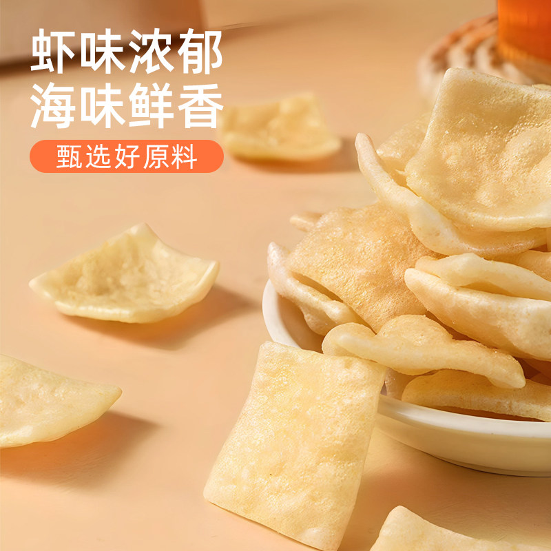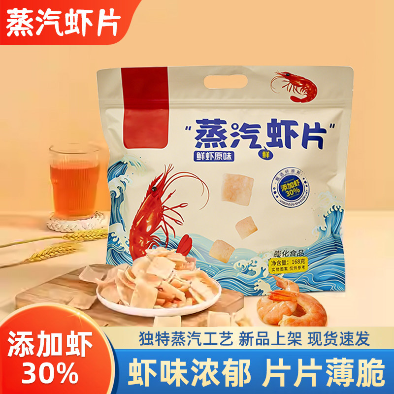 新货上市蒸汽虾片添加虾30%鲜虾原味开袋即食蒸汽虾片膨化零食