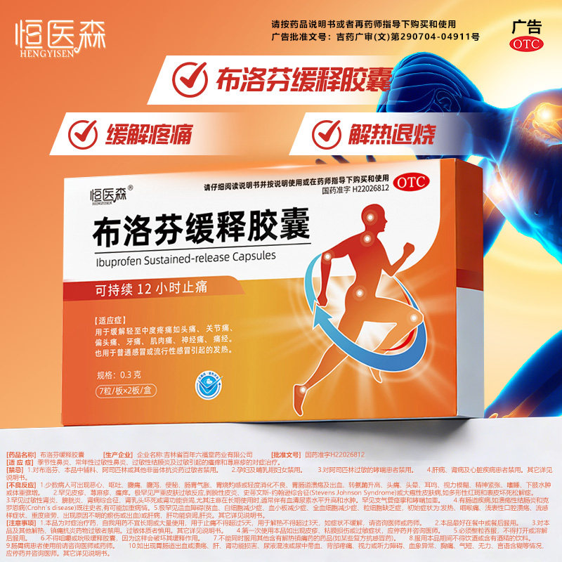 布洛芬缓释胶囊正品感冒发烧退烧止痛头痛关节痛解热镇痛官方H