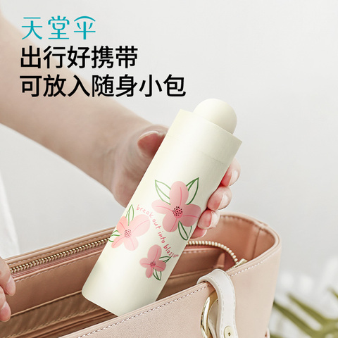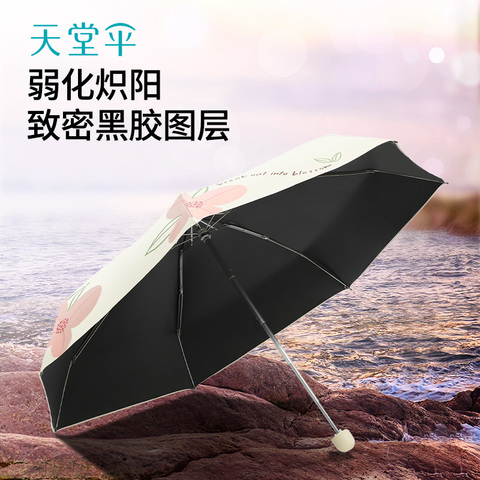 天堂伞黑胶防晒遮阳五折伞晴雨两用小巧便携太阳伞迷你口袋胶囊伞