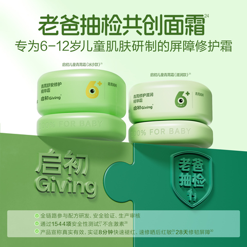 【淘金币4.18,到手25.42】启初儿童青蒿面霜专为6岁及以上学龄儿童设计,含青蒿提取物与神经酰胺,温和舒缓日晒后泛红干燥,强化肌肤屏障。质地细腻柔润,易吸收不黏腻,适合日常保湿及晒后修护双重需求。通过皮肤科测试,无酒精、无香精、无色素,低敏配方更安心。搭配儿童娇嫩肌肤特点,提升锁水力与耐受力,让小脸柔软润泽、状态稳定。家长安心之选,陪伴孩子日常健康护肤。