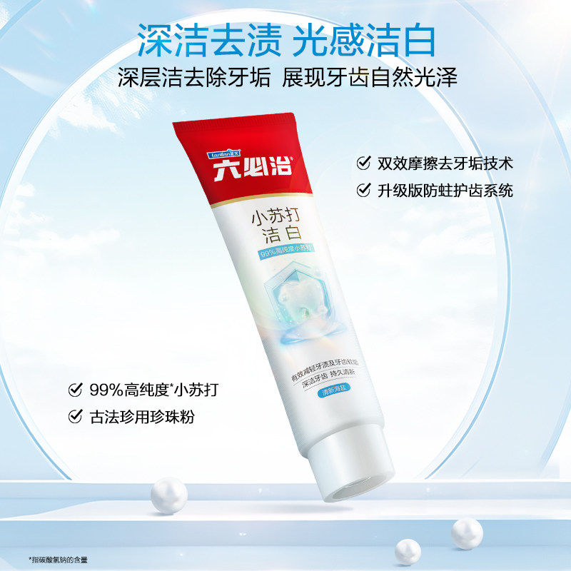 六必治中草药小苏打多效牙膏120g*3支含氟亮白去黄去口臭家庭装
