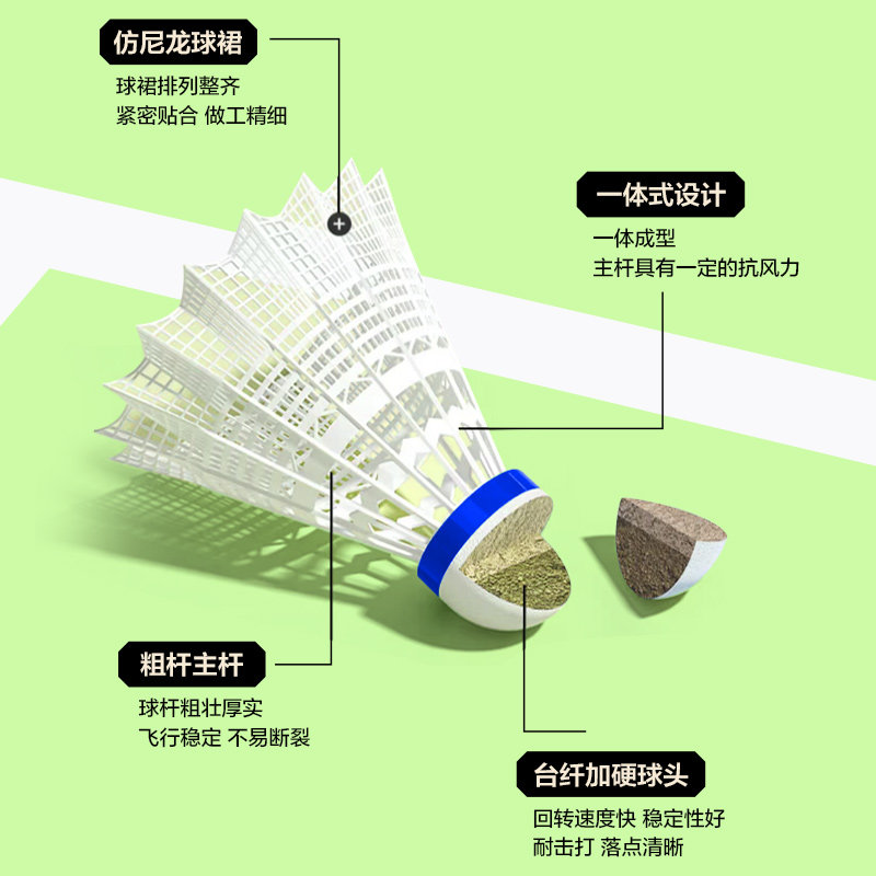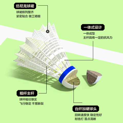 乐动力尼龙球羽毛球软木球头,高弹力耐打,飞行稳定,适合比赛和训练。性价比高,运动必备!