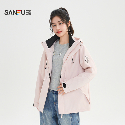三福户外工装风外套女2026新款春季可拆连帽多口袋宽松多巴胺女装