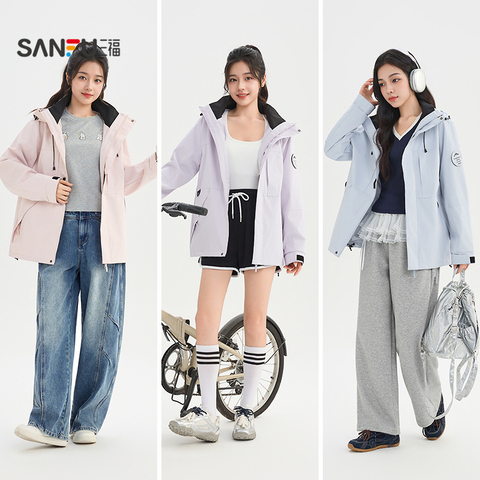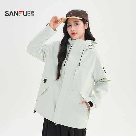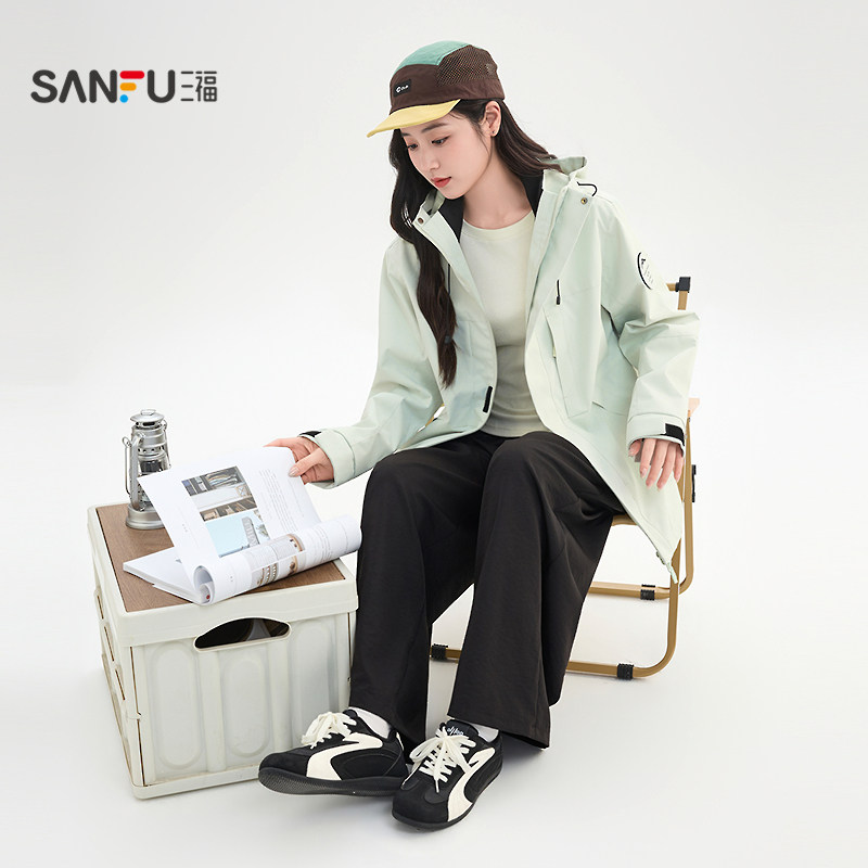 【三福】2026春季新款户外工装风外套女,可拆连帽设计,多口袋实用,宽松版型显瘦百搭,多巴胺风格穿搭利器,轻松打造时尚户外造型!
