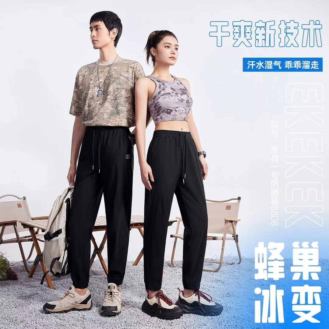 爆冰防晒芯片裤 夏季束脚吸湿蜂巢冰变休闲男女同款防蚊速干裤