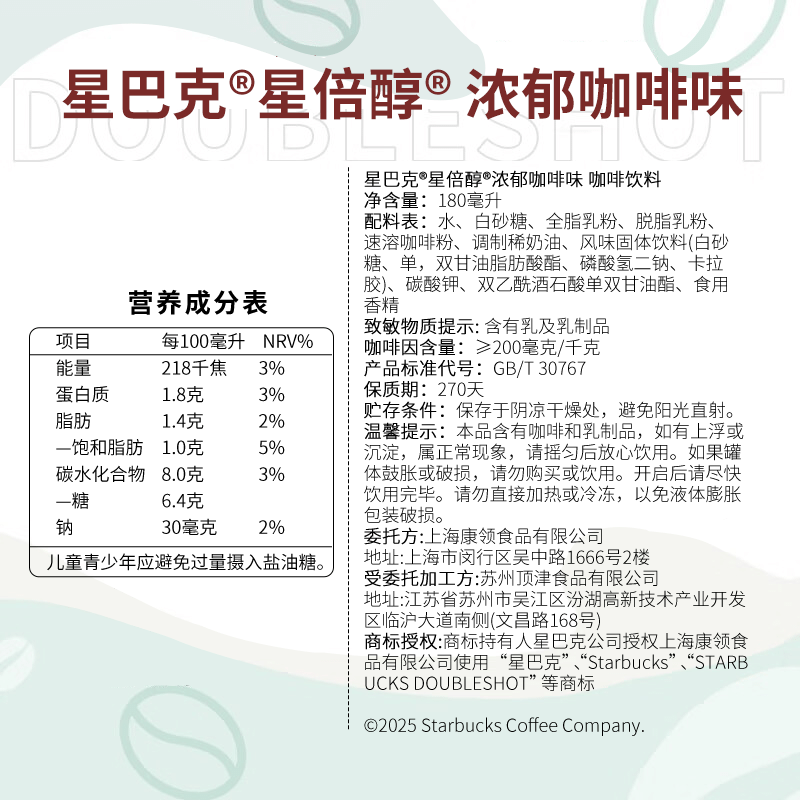 Starbucks/星巴克星倍醇浓郁咖啡味180ml*24罐即饮咖啡饮料