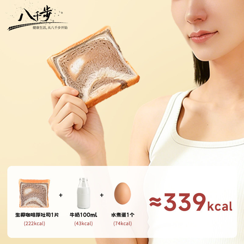 早八党速来!超好吃又顶饱的吐司! 八千步旗舰店•抹茶/生椰咖啡厚切吐司420g 12.9亓 有抹茶和生椰咖啡两种口味!哪一种都超好吃! 早餐配牛奶太合适了!单独包装,饿了随时来一块!