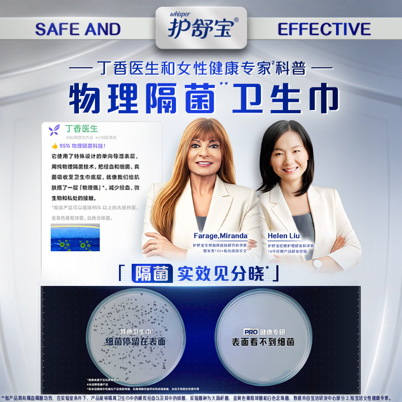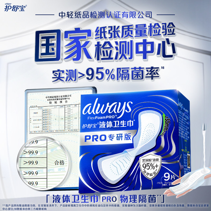 【告别闷湿痒】护舒宝物理隔菌卫生巾PRO健康专研日用液体姨妈巾
