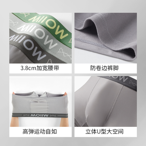 猫人男士纯棉内裤立体U型大囊袋加宽腰带舒适柔软新疆长绒棉面料