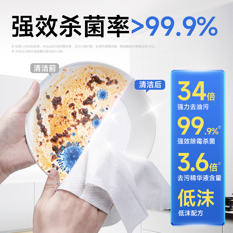 【张杰代言,官方立减7.2元,88vip到手28.4元/3大包】去污 + 杀菌 + 清洁!!200mm加大尺寸,一抹即净,省时省力,珍珠纹无纺布,温和护肤,去油不伤手!高效去油污,守护家人健康!关键是
