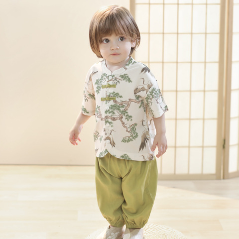 男童汉服夏季7分袖薄款宝宝周岁礼服新中式衣服两件套夏儿童套装