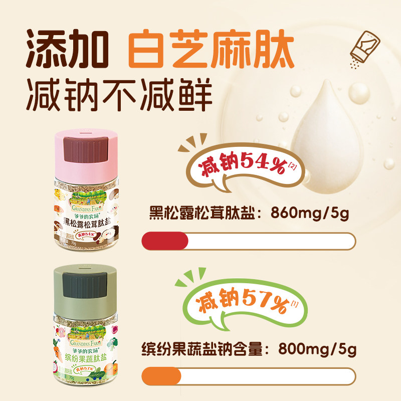 【宝宝辅食必备!爷爷的农场果蔬盐儿童调味芝麻盐松茸食用盐】天然健康,专为宝宝设计,添加果蔬精华,营养更易吸收。淘金币可抵扣,母婴优选,安心之选!