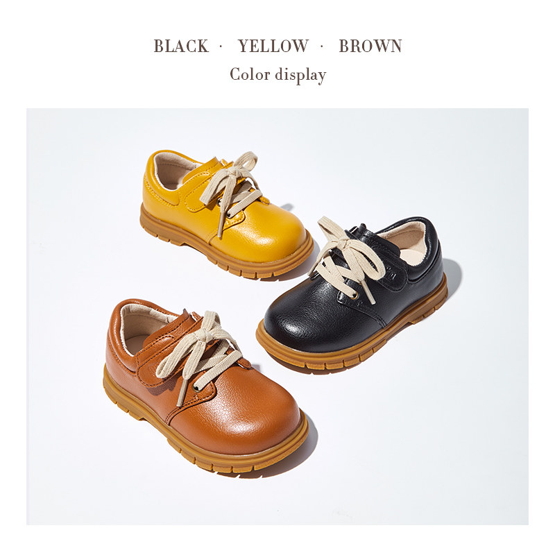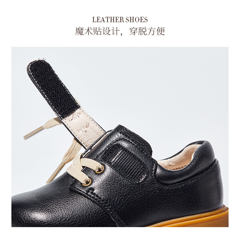 卡特兔女童皮鞋黑色皮靴男秋冬新款英伦风学生单鞋男童小皮鞋