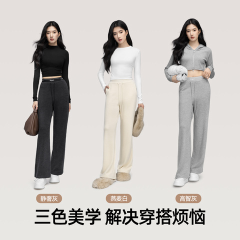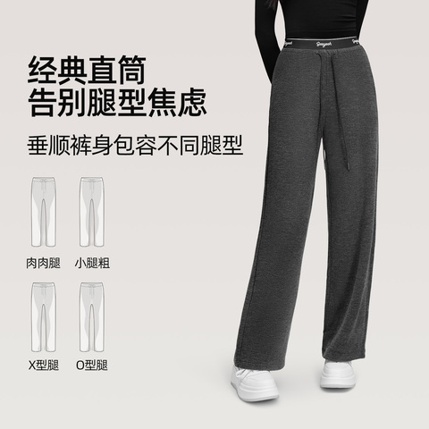 【超值特惠】小野和子直筒裤女秋磨毛休闲裤针织阔腿显瘦长裤TK