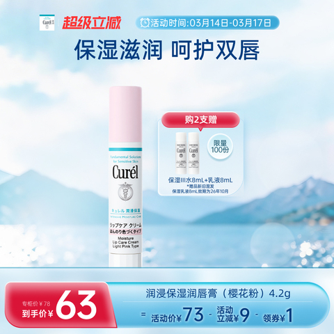 curel珂润保湿柔润护唇膏4.2g 【售价】:¥64.00 【券后】:¥58.00 【优惠券】:¥6 推荐理由:珂润4.2g唇膏来啦!神经酰胺搭配霍霍巴籽油,修护唇屏障锁水超给力。质地如融脂般顺滑不黏腻,透明色百搭,樱花粉显元气。男女通用,敏感肌也能安心用,干唇救星! 👉复制这条信息89¥ HU926 WUwKUC6et2y¥ 打开【手机淘宝APP】即可领券购买:/