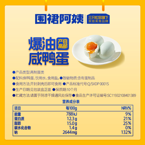 98¥ CZ057 r6vu52CQHmr¥ https://m.tb.cn/h.iQkuixK 三只松鼠生活馆围裙阿姨高邮咸鸭蛋咸香起沙流油正宗即食熟食解馋