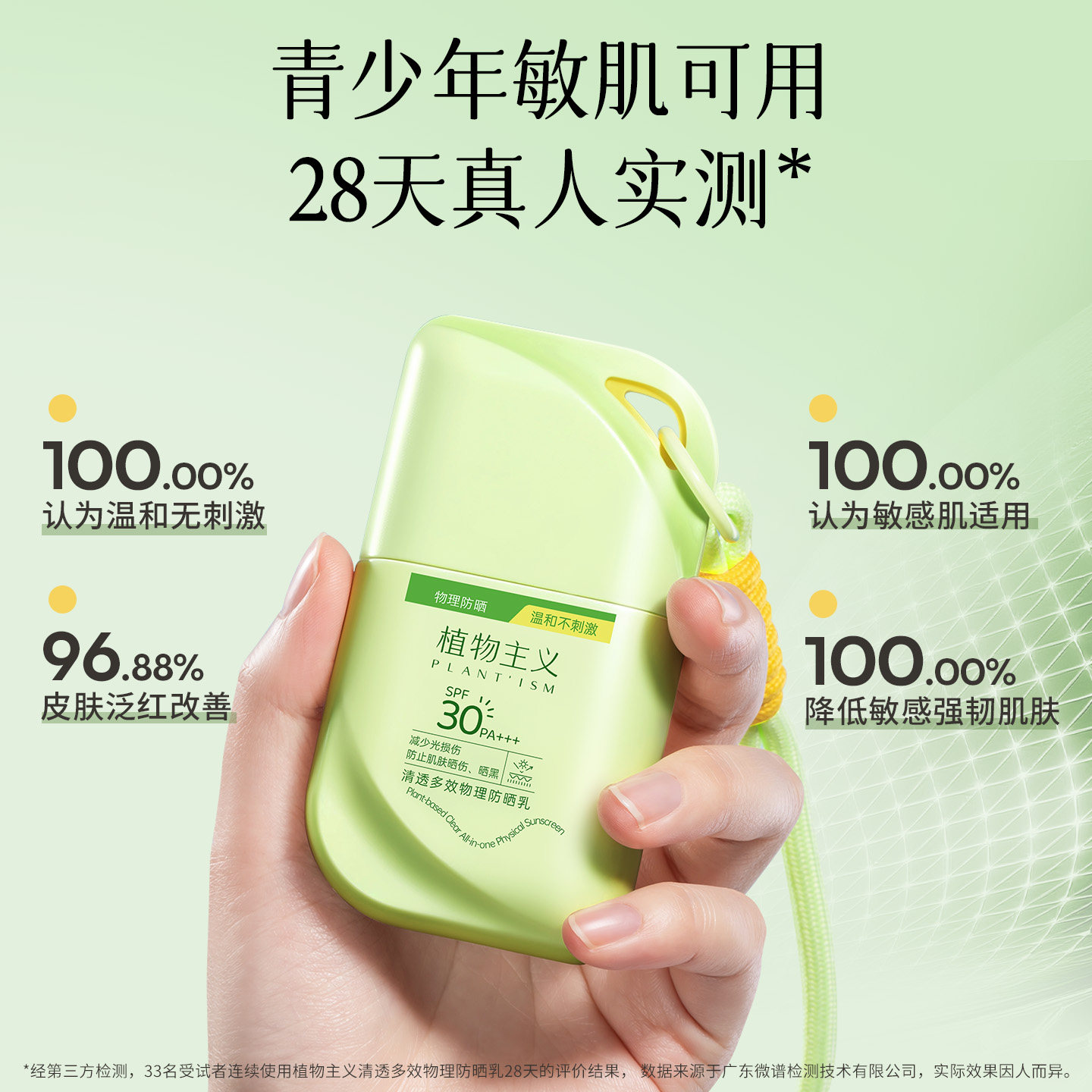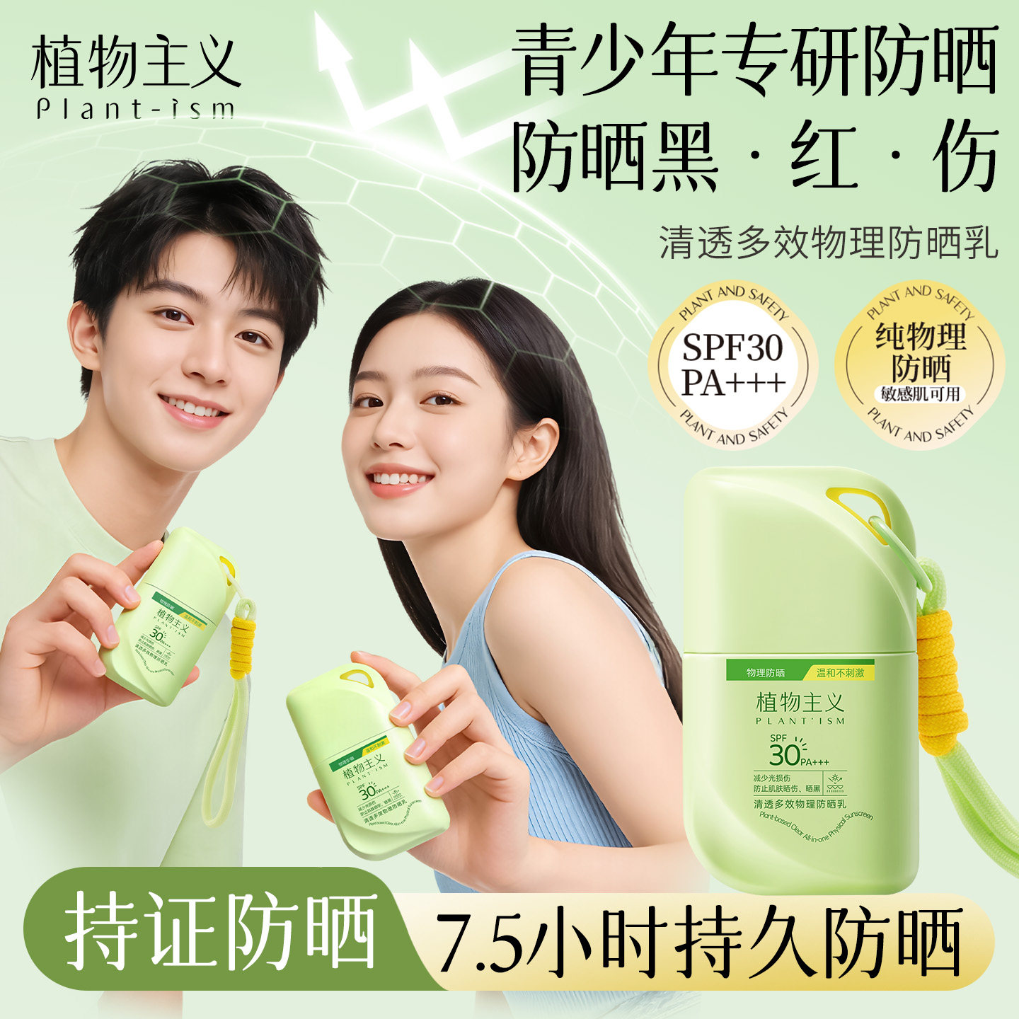 学生党防晒选它!植物主义青少年物理防晒乳。纯物理配方,敏肌可用,温和不刺激,轻薄不油腻,速干不假白,防水防汗。7.5小时长效防护,挂绳设计随身补涂,给青春期肌肤全方位安心守护