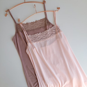 外贸出日本女士蕾丝花边薄软纯棉吊带胸垫背心打底衫内搭修身罩杯