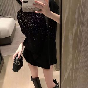 简欧小众别致高品质十字潮个性烫钻翅膀图案圆领大码300斤男女T恤