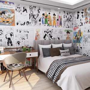 卡通动漫七龙珠房间墙纸儿童房卧室床头装饰背景墙布黑白漫画壁纸